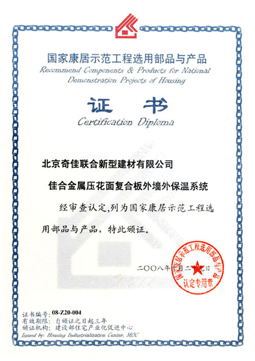 - 2008年被選入“國家康居示范工程選用部品與產(chǎn)品”